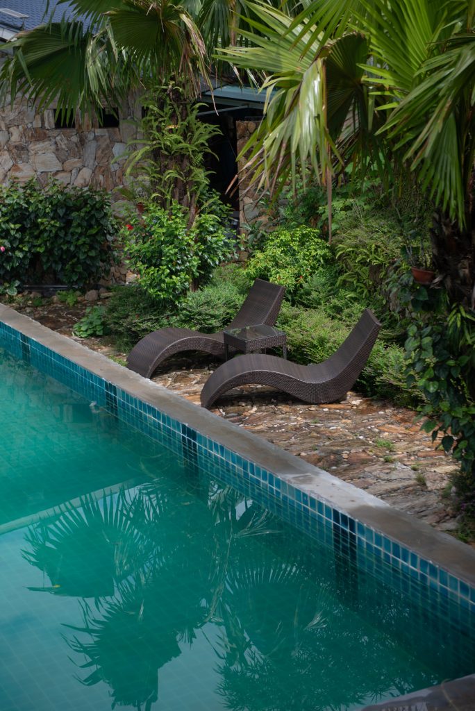At an elevation of 730 meters on the slopes of Tay Con Linh mountain, our 12m x 6.5m pool is fed by a pure waterfall sourced from 1,250 meters above sea level. Since 2019, we have maintained 4,000 meters of gravity-fed piping to bring this fresh water directly to the lodge, ensuring a 100% chemical and chlorine-free experience through only basic sediment filtration. Handcrafted from local stone, this modest sanctuary is designed to blend seamlessly into the misty mountains and the valley below. It stands as a reflection of our commitment to the earth—taking only what we need and returning it to the land as clean as we received it, allowing you to truly connect with the calm rhythm of Hà Giang